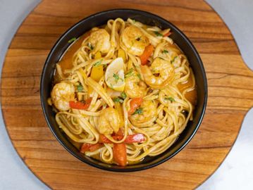 Linguine, bell peppers, onions, Jambalaya special sauce.